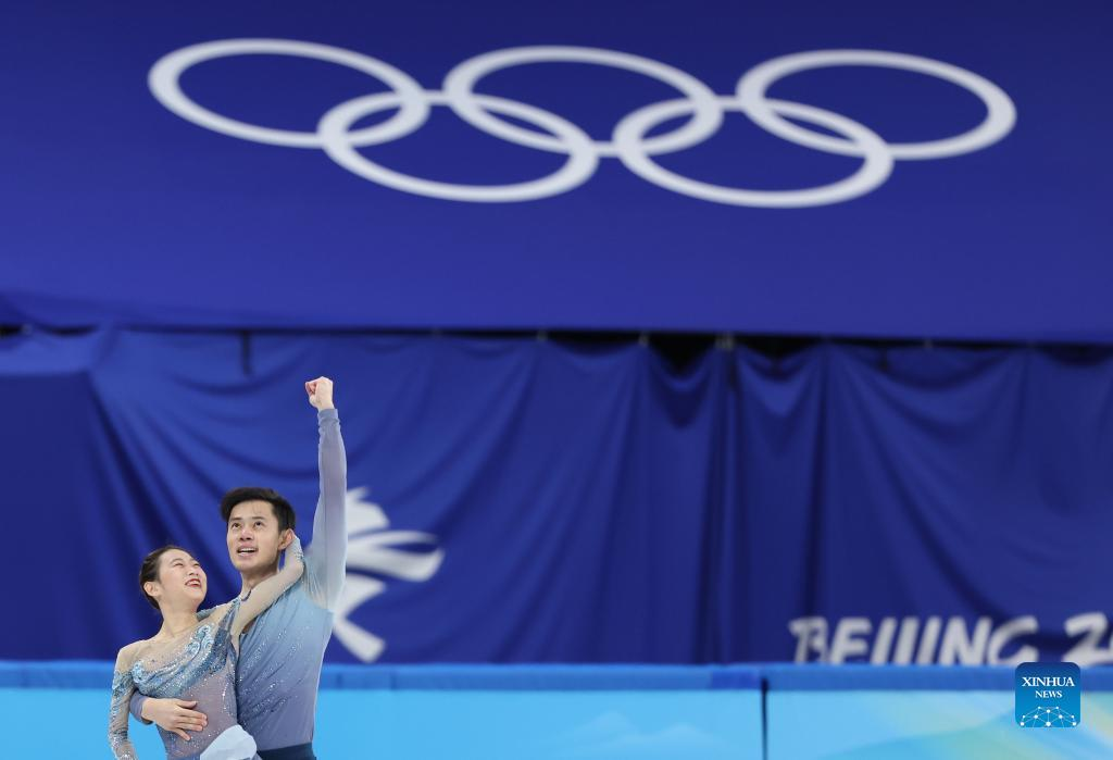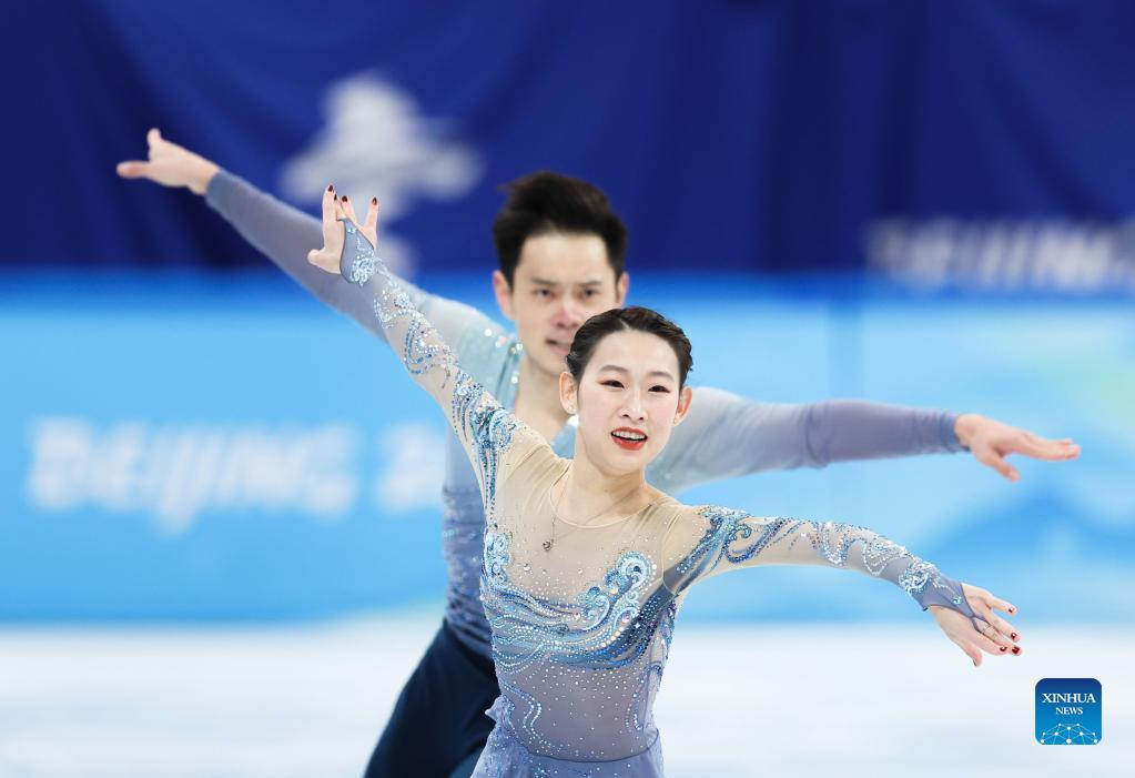 Sui Wenjing (L)/Han Cong of China perform during the figure skating pair skating short program at Capital Indoor Stadium in Beijing, capital of China, Feb. 18, 2022. (Xinhua/Lan Hongguang)