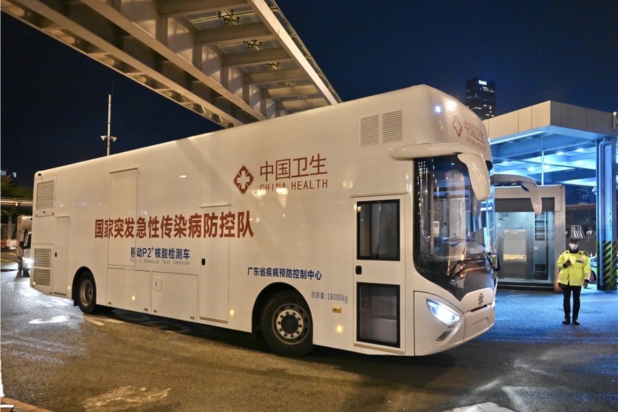 A mobile medical test vehicle arrives in Hong Kong, south China, Feb. 17, 2022. (Xinhua)