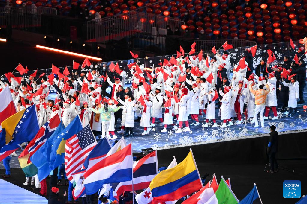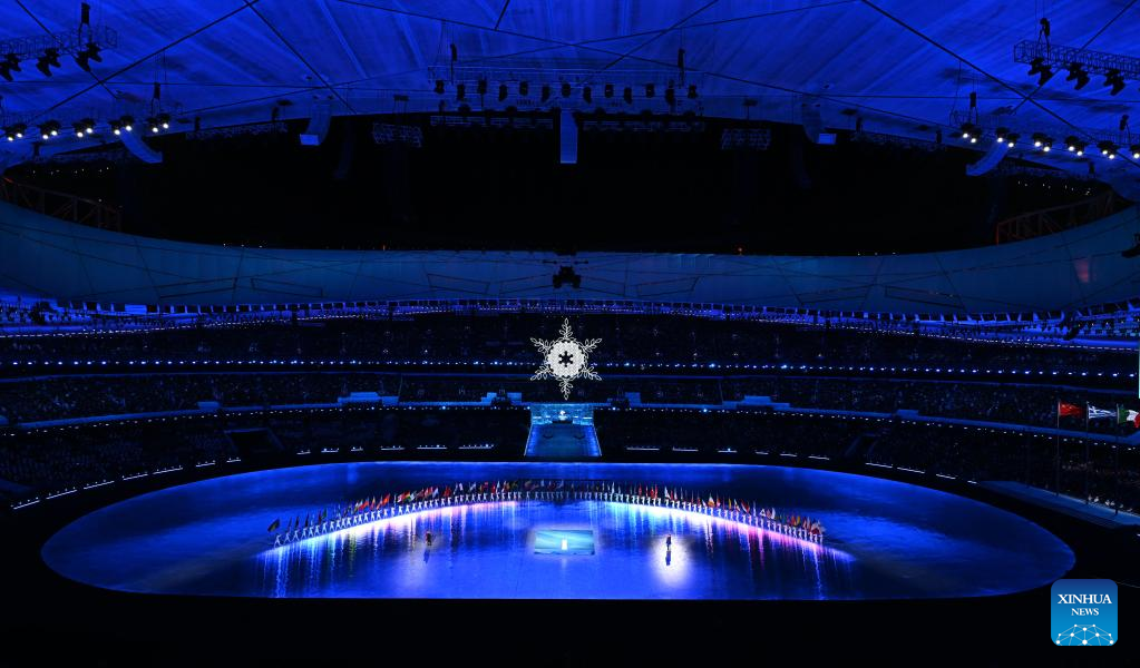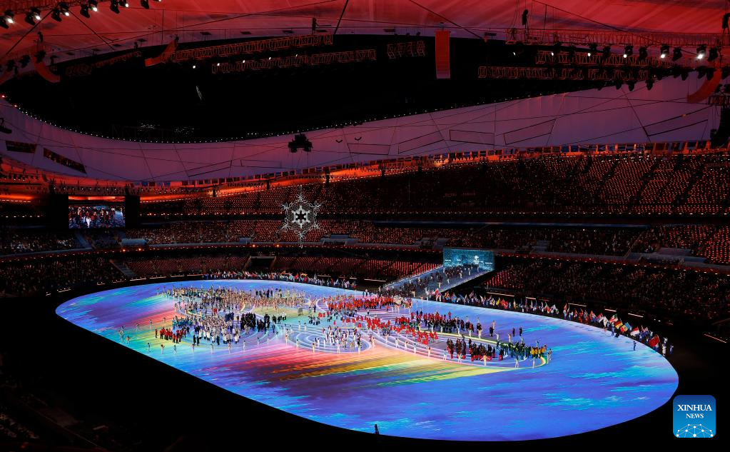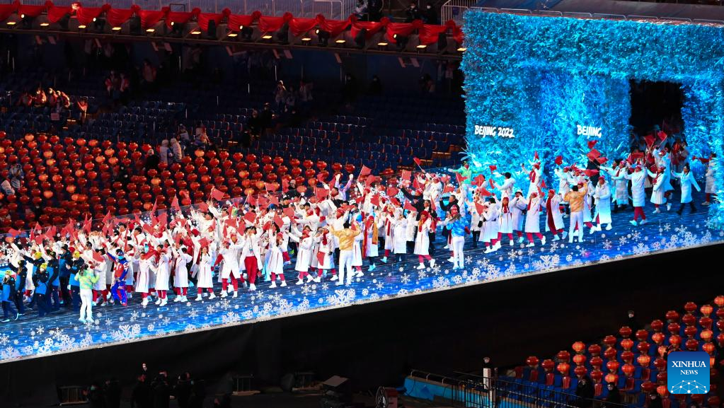 Athletes parade during the closing ceremony of the Beijing 2022 Olympic Winter Games at the National Stadium in Beijing, capital of China, Feb. 20, 2022. (Xinhua/Ding Xu)