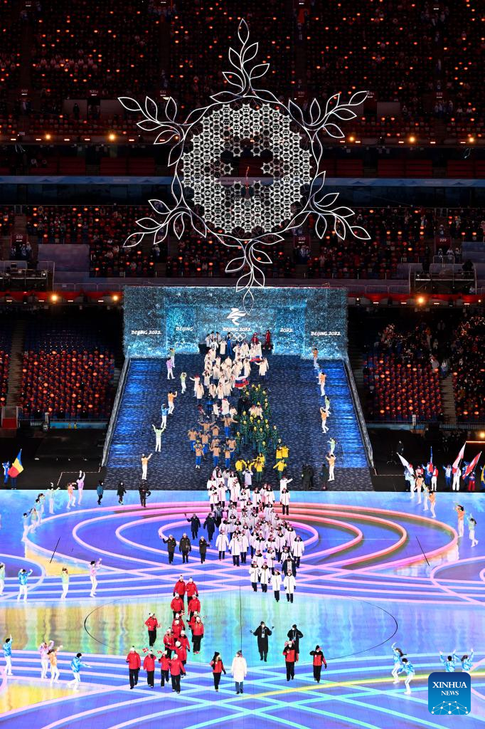 Athletes parade during the closing ceremony of the Beijing 2022 Olympic Winter Games at the National Stadium in Beijing, capital of China, Feb. 20, 2022. (Xinhua/Li He)