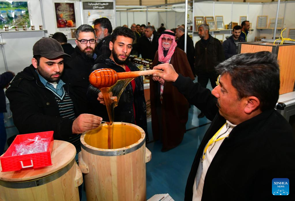 People visit the Honey Festival in Damascus, capital of Syria, Feb. 20, 2022. (Photo by Ammar Safarjalani/Xinhua)