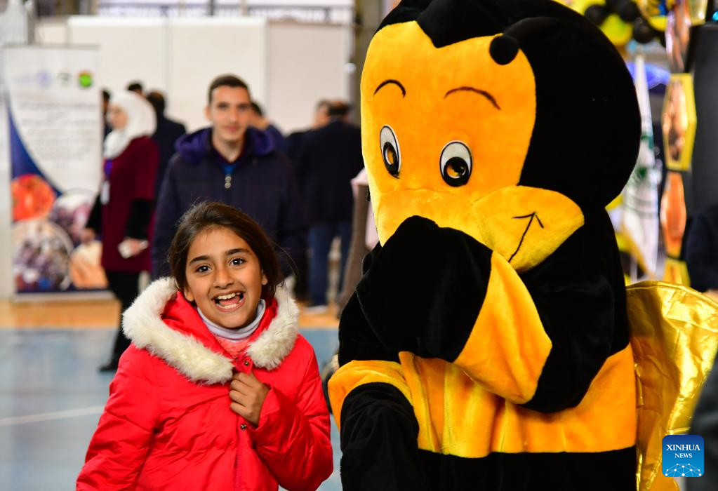 People visit the Honey Festival in Damascus, capital of Syria, Feb. 20, 2022. (Photo by Ammar Safarjalani/Xinhua)