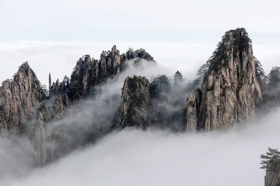 Photo taken on March 10, 2021, shows cloud-shrouded mountain in the Huangshan Mountain scenic area in East China's Anhui province. [Photo/Xinhua]