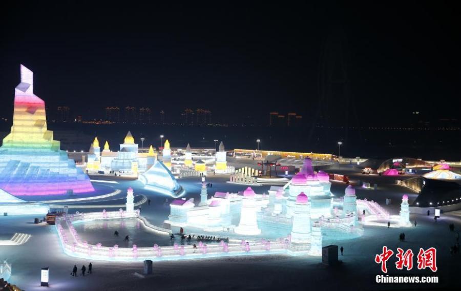 Harbin Ice-Snow World has attracted surging tourists recently, over 4,000 visitors each day. (Photo: China News Service/Jiang Hui)