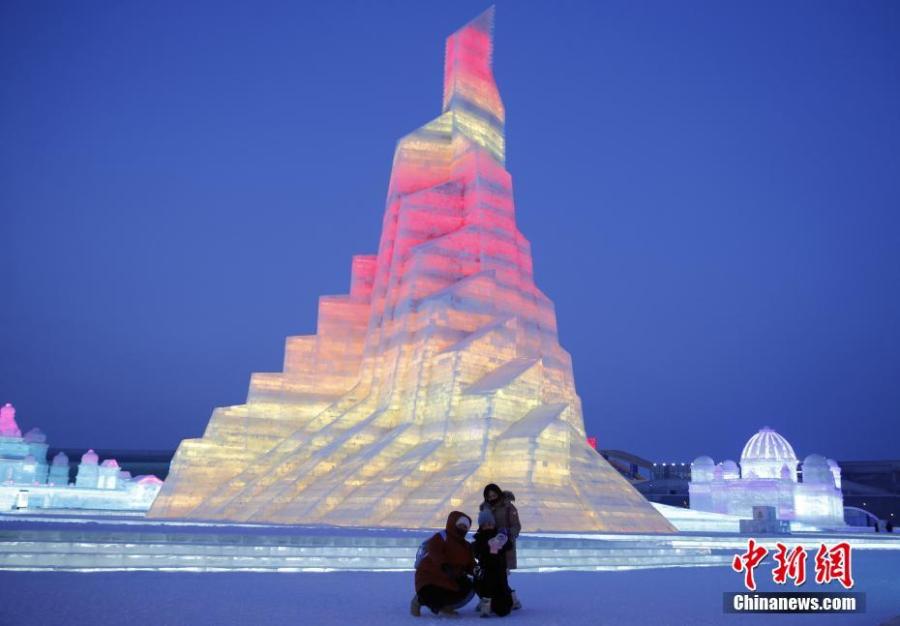 Harbin Ice-Snow World has attracted surging tourists recently, over 4,000 visitors each day. (Photo: China News Service/Jiang Hui)
