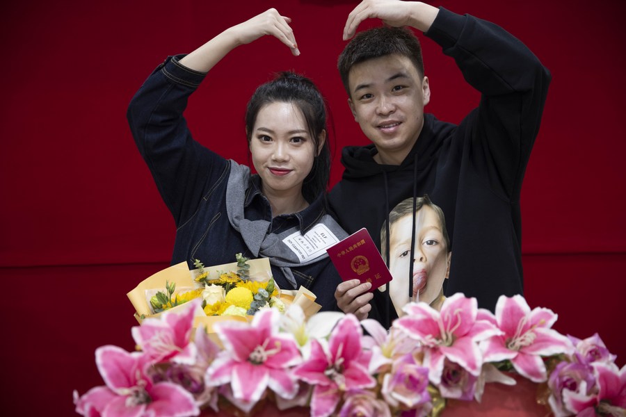 In Pics: Lovebirds and their marriage registration on a special date in China