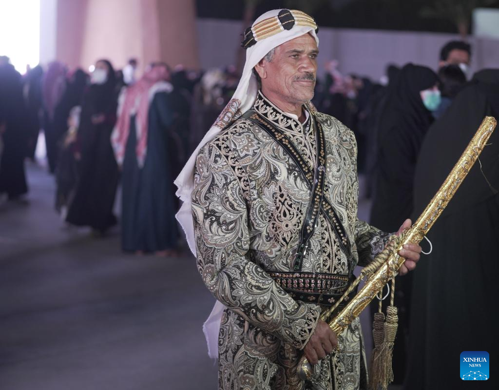 (220222) -- DAMMAM (SAUDI ARABIA), Feb. 22, 2022 (Xinhua) -- A man wearing traditional clothes is seen during the first kingdom's Founding Day celebrations in Dammam, Saudi Arabia, on Feb. 22, 2022. (Photo by Mohamed Nasr/Xinhua)