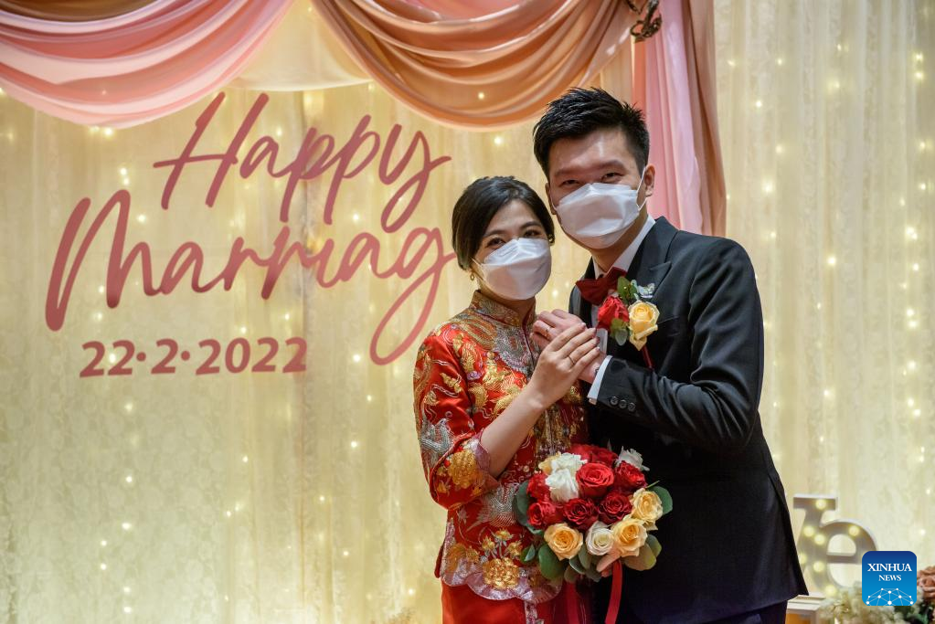 Feb. 22 of 2022, a date with numbers of 2s that roughly resonant the pronunciation of "love" in spoken Chinese, is preferred by couples to registrate marriage for good wishes. (Photo by Then Chih Wey/Xinhua)