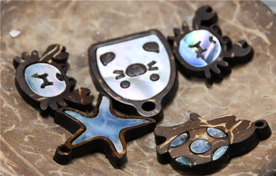 Coconut carving artworks on display in Qionghai city, South China's Hainan province, on Feb 18, 2022. [Photo/Xinhua]