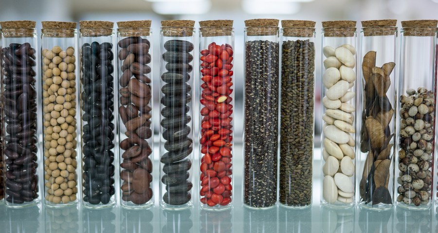 Photo taken on Oct. 20, 2021 shows seeds stored at the Germplasm Bank of Wild Species in Kunming, southwest China's Yunnan Province. (Xinhua/Jiang Wenyao)