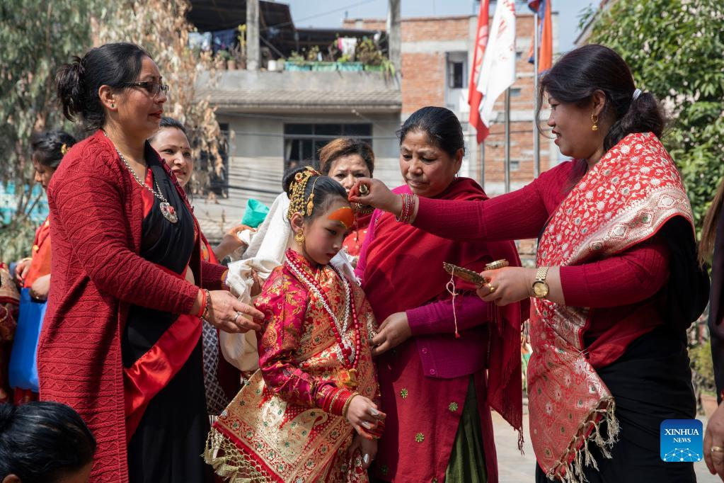 A girl participates in a puberty ceremony known as Gufa in Lalitpur, Nepal, Feb. 23, 2022. (Photo by Hari Maharjan/Xinhua)