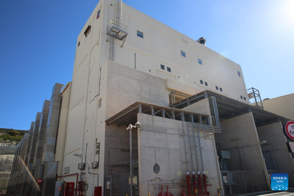 Photo taken on Feb. 23, 2022 shows a view of the Delimara 3 power station in Marsaxlokk, southeastern Malta. The Delimara 3 (D3) power station, controlled and operated by China's Shanghai Electric Power (Malta) Holding Co., Ltd. (SEP), has played an important role in power supply in Malta, and emission reduction and air quality improvement in the areas around the power plant. The D3 station was turned from a heavy oil-fired power station into a gas-fired one by the SEP. (Xinhua/Chen Wenxian)