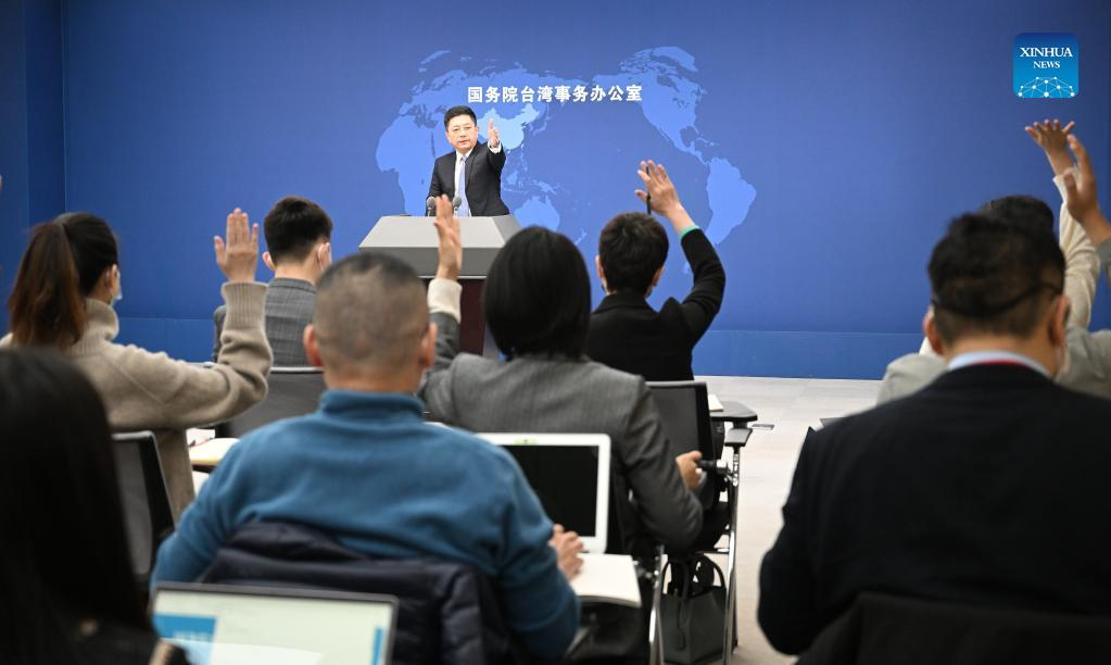 Ma Xiaoguang, spokesperson for the Taiwan Affairs Office of the State Council, attends a press conference in Beijing, capital of China, Feb. 23, 2022. (Xinhua/Chen Yehua)
