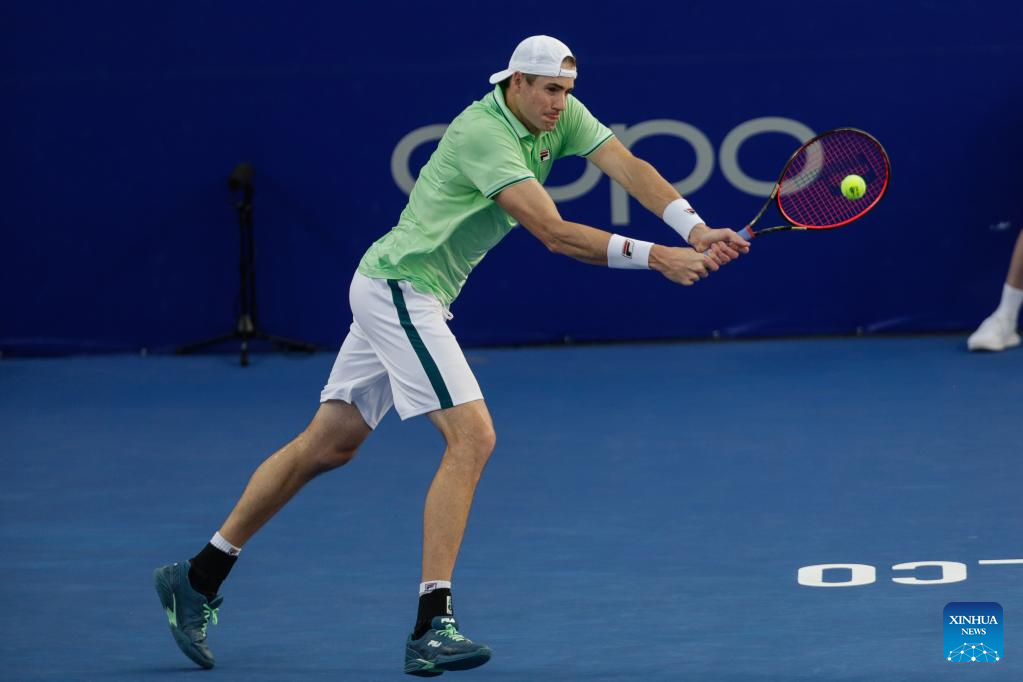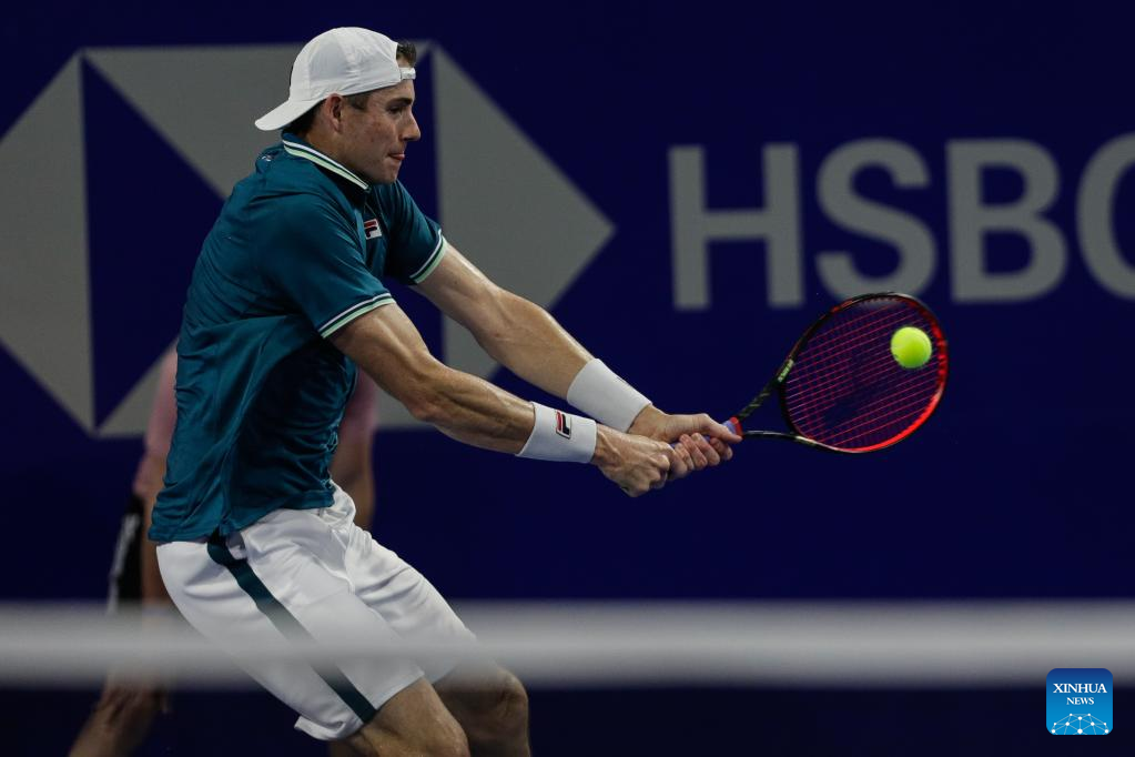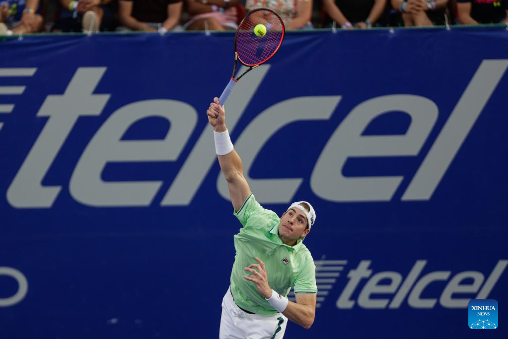 John Isner of the United States hits a return during the men's singles round of 16 match between Cameron Norrie of Great Britain and John Isner of the United States at the 2022 ATP Mexican Open tennis tournament in Acapulco, Mexico, Feb. 23, 2022. (Photo by Francisco Canedo/Xinhua)