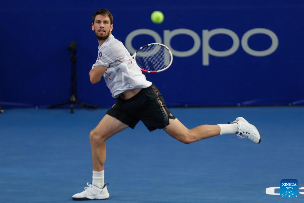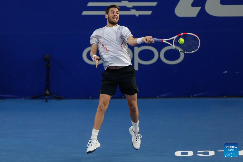 Cameron Norrie of Great Britain hits a return during the men's singles round of 16 match between Cameron Norrie of Great Britain and John Isner of the United States at the 2022 ATP Mexican Open tennis tournament in Acapulco, Mexico, Feb. 23, 2022. (Photo by Francisco Canedo/Xinhua)