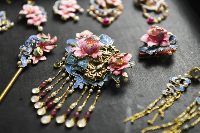 Five years ago, Gu opened a filigree inlay workshop. Now, the 15-member team from the workshop is able to produce about 1,000 pieces of filigree inlay works in a year. Their flagship artwork is one that was created by using more than 1-million-yuan worth of raw materials, and it is now used for display purposes only. One of the team’s videos that shows Gu repairing an old bridal crown was watched more than 7.4 million times on the short-video sharing platform Kuaishou, revealing people’s growing interest in the traditional craft.