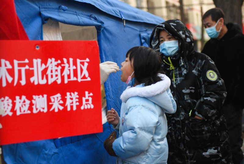 Residents line up to receive nucleic acid tests at a community in Hohhot, north China's Inner Mongolia Autonomous Region, Feb. 24, 2022. (Xinhua/Liu Lei)