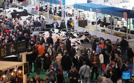 People visit the 58th International Agriculture Fair at the Porte de Versailles exhibition center in Paris, France, Feb. 26, 2022. The fair will last until March 6, 2022. (Xinhua/Gao Jing)