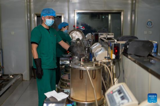 Pharmacists make traditional Chinese medicine (TCM) at the Inner Mongolia Autonomous Region Hospital of Traditional Chinese Medicine in Hohhot, north China's Inner Mongolia Autonomous Region, Feb. 25, 2022. Amid the lastest resurgence of COVID-19, the Inner Mongolia Autonomous Region Hospital of Traditional Chinese Medicine has been engaging in the fight against the disease by applying TCM. (Xinhua/Li Zhipeng)