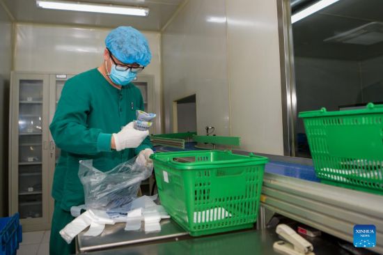 A pharmacist packs traditional Chinese medicine (TCM) at the Inner Mongolia Autonomous Region Hospital of Traditional Chinese Medicine in Hohhot, north China's Inner Mongolia Autonomous Region, Feb. 25, 2022. Amid the lastest resurgence of COVID-19, the Inner Mongolia Autonomous Region Hospital of Traditional Chinese Medicine has been engaging in the fight against the disease by applying TCM. (Xinhua/Li Zhipeng)