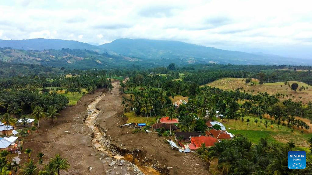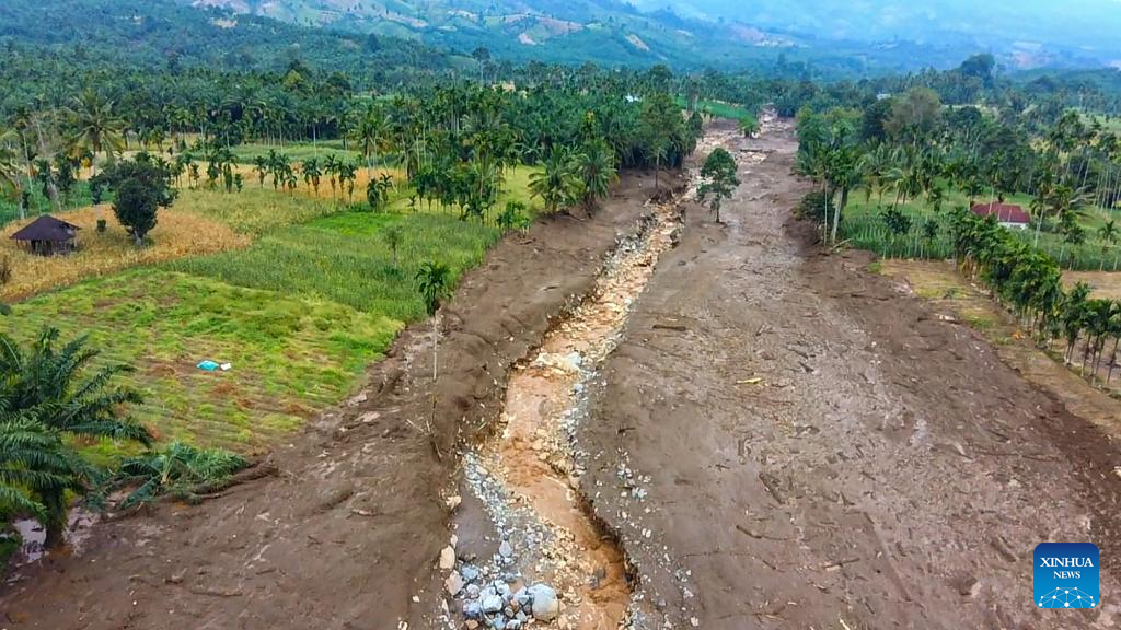 An aerial photo released by District Disaster Management Agency (BPBD) Limapuluh Kota shows mud caused by landslides after a 6.1 magnitude quake in Pasaman Barat, West Sumatra, Indonesia, Feb. 27, 2022. (BPBD Limapuluh Kota/Handout via Xinhua)