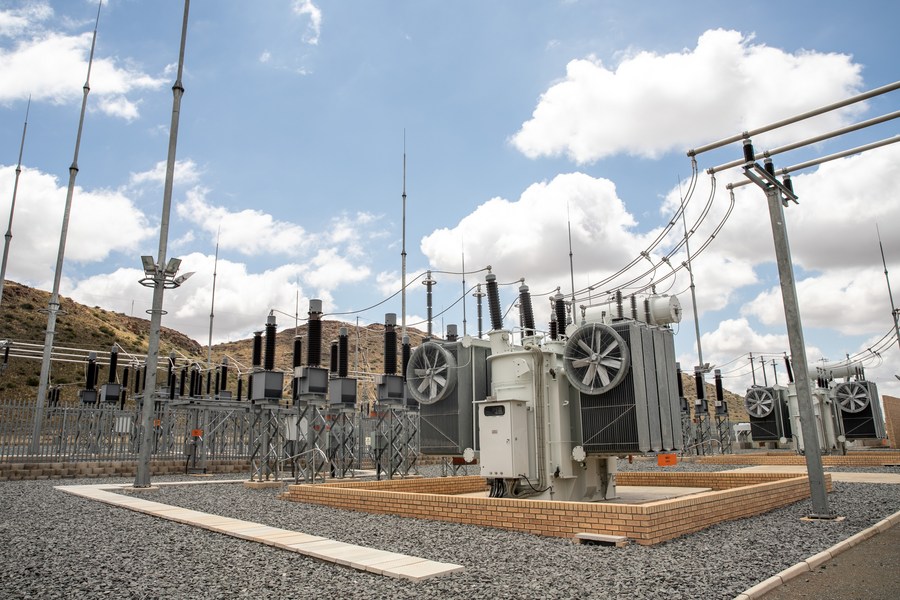 Photo taken on Nov. 22, 2021 shows facilities of the De Aar wind power project invested by China's Longyuan Power and its South African partners in De Aar, South Africa. (Xinhua/Lyu Tianran)