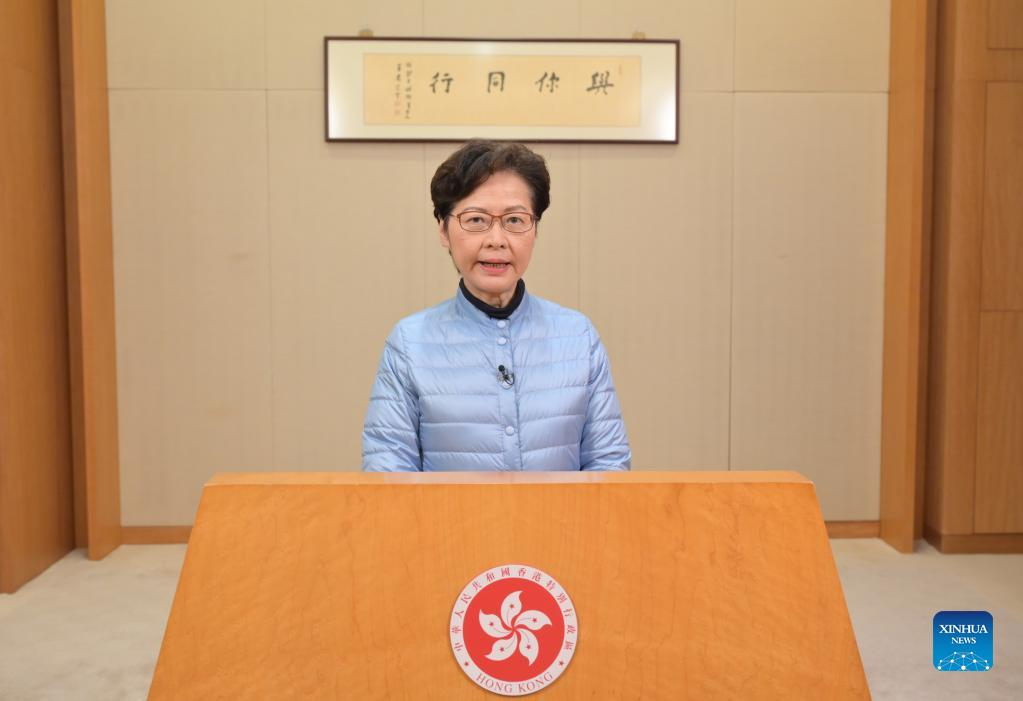 Lam, the HKSAR chief executive, said in a video speech earlier on Monday that Hong Kong will undoubtedly win the battle against the epidemic and resume normal under the staunch support from the country.