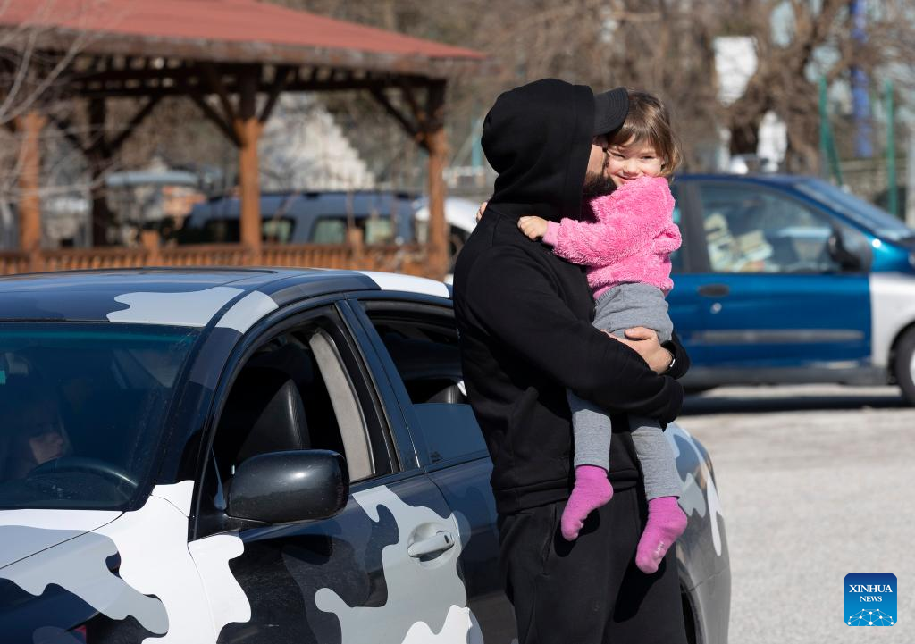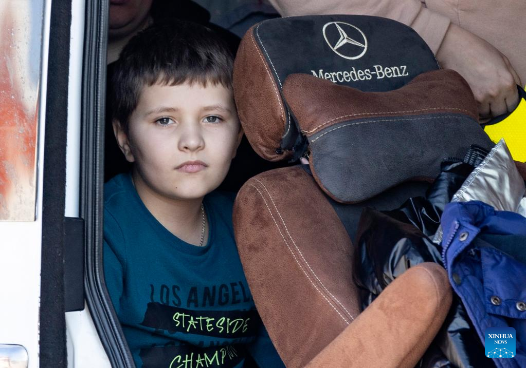 Photo taken on Feb. 28, 2022 shows a Ukrainian child in Trieste, Italy.