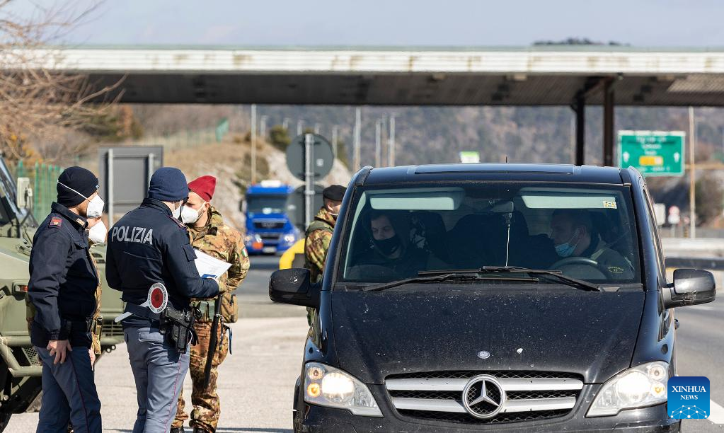 Italian police officers check on Ukrainian people in Trieste, Italy, Feb. 28, 2022.