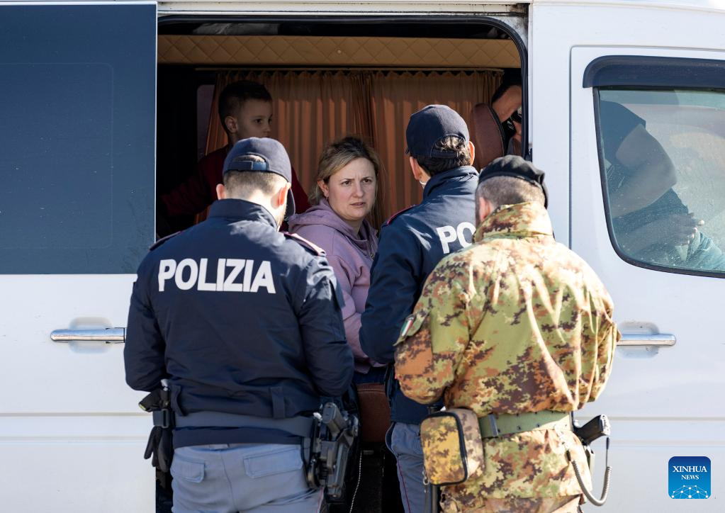Some Ukrainian people on Monday arrived in Trieste, a port city located on the border between Italy and Slovenia. (Str/Xinhua)
