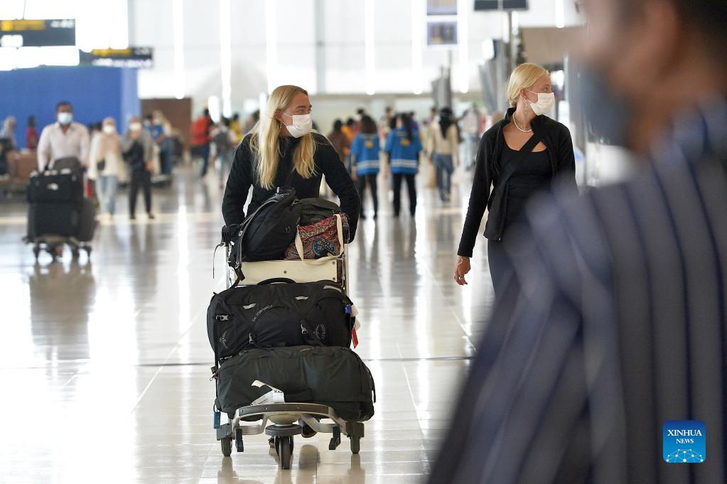 Passengers are seen at the Suvarnabhumi International Airport in Bangkok, Thailand, on March 1, 2022. Thailand eased entry quarantine requirements from Tuesday, reducing the COVID-19 test to one time after entry, and the COVID-19 insurance required for inbound travelers reduced to 20,000 U.S. dollars. (Xinhua/Rachen Sageamsak)