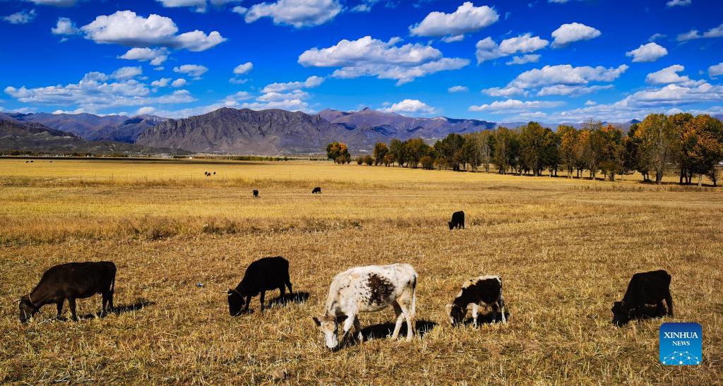 Photo taken with a mobile phone shows the autumn scenery in Lhunzhub county of Lhasa, Southwest China's Tibet autonomous region, on Oct 16, 2021. [Photo/Xinhua]