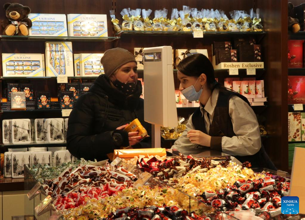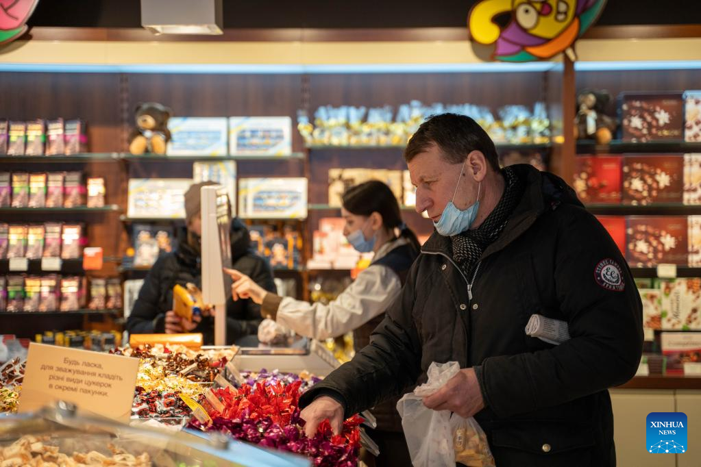 People shop at a store in Lviv, Ukraine, March 1, 2022. (Xinhua/Ren Ke)
