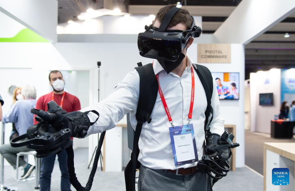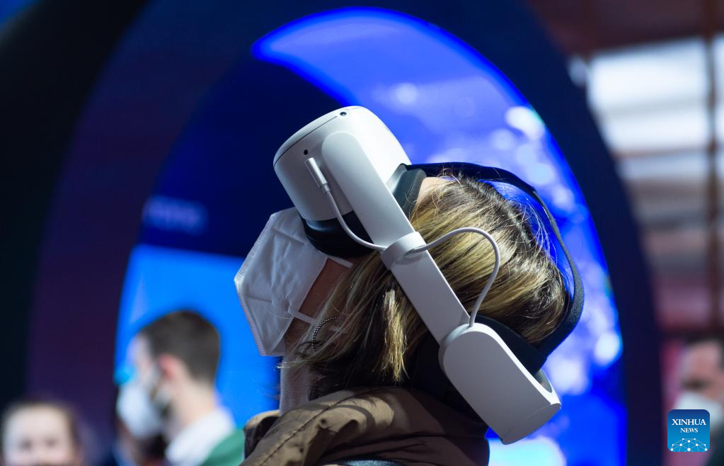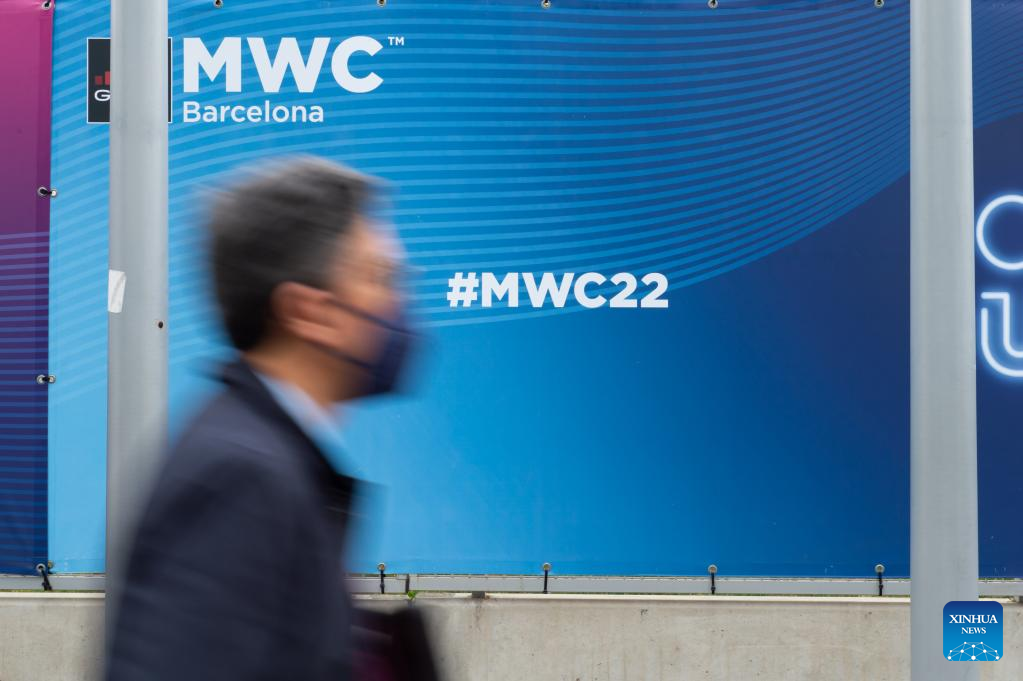 A visitor is seen at the Mobile World Congress (MWC) in Barcelona, Spain, March 2, 2022. The 2022 edition of the Mobile World Congress opened its doors on Feb. 28, for a four-day event that is expected to host between 40,000 and 60,000 people. (Photo by Gustavo Valiente/Xinhua)