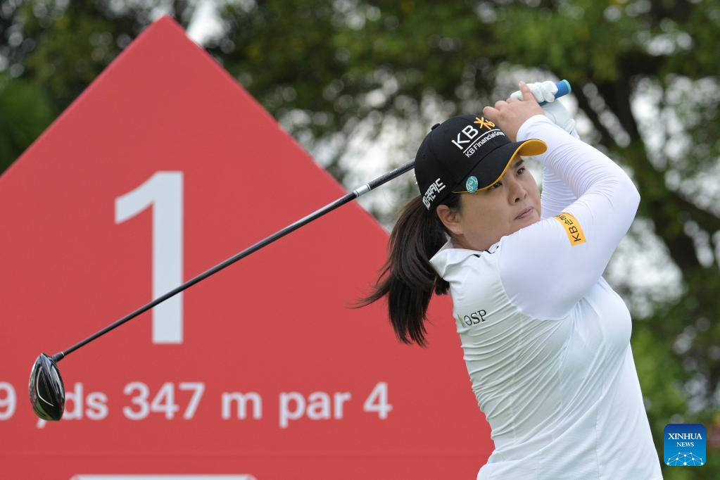 Park Inbee of South Korea competes on the first day of HSBC Women's World Championship held at the Tanjong course of Singapore's Sentosa Golf Club on March 3, 2022. (Photo by Then Chih Wey/Xinhua)