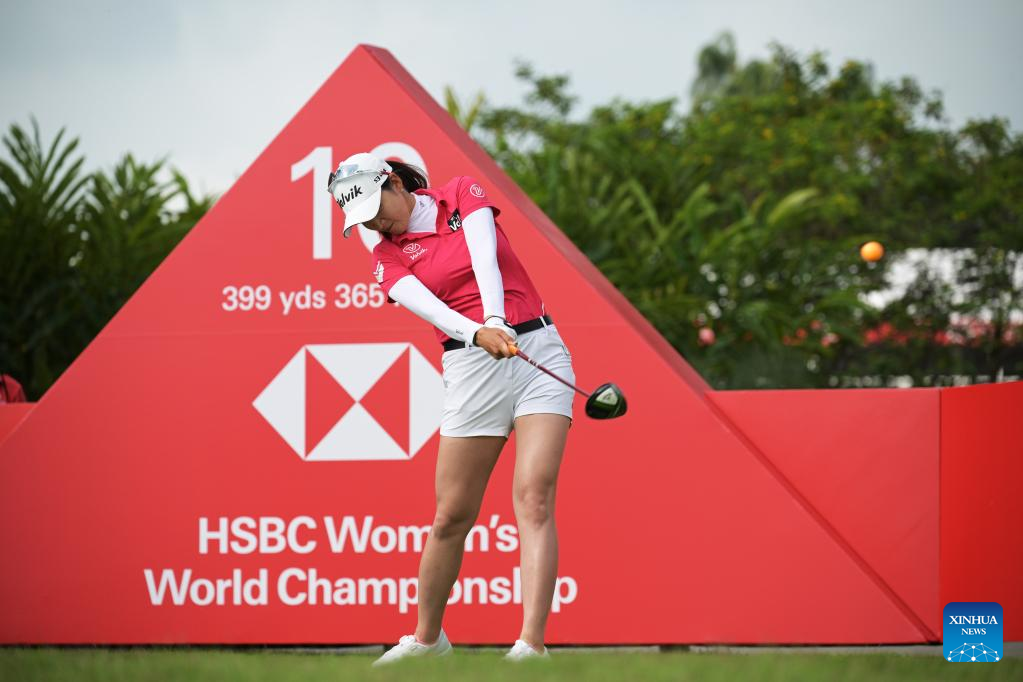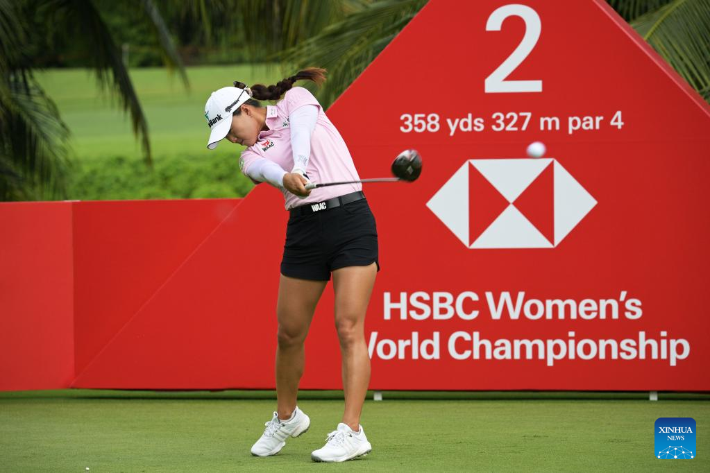 Lee Minjee of Australia competes on the first day of HSBC Women's World Championship held at the Tanjong course of Singapore's Sentosa Golf Club on March 3, 2022. (Photo by Then Chih Wey/Xinhua)