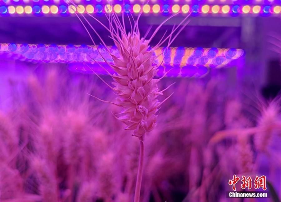 Photo shows a ripe ear of winter wheat cultivated in a lab of the Pingliang Academy of Agricultural Sciences in Gansu. The wheat was reaped after 105 days. Fifty varieties of wheat have been successfully cultivated, with the highest yield of more than 250 kg per mu (about 0.07 hectare). (Photo: China News Service/Li Weixuan)