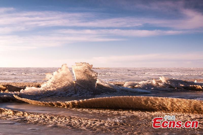 Sunset scenery over the frozen Qinghai Lake, China's largest inland salt lake, at Erlangjian scenic area, northwest China's Qinghai Province. (Photo: China New Service/Zhao Haimei)