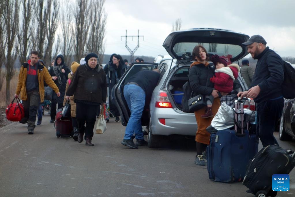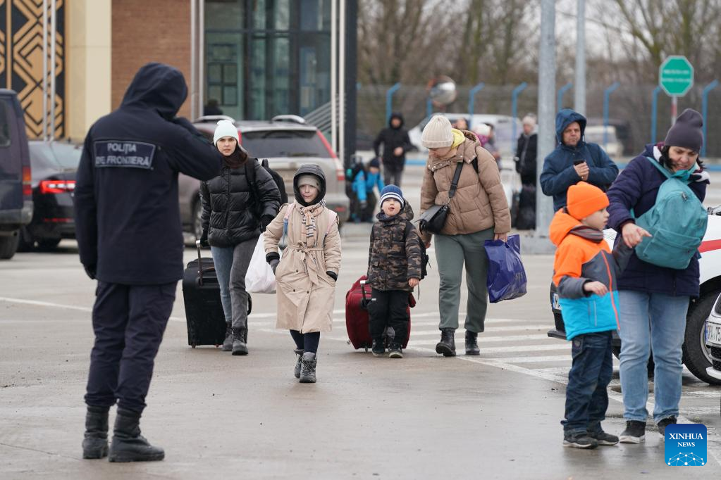 Some people from Ukraine arrive at Palanca checkpoint, Moldova, March 2, 2022. (Xinhua/Wang Qing)