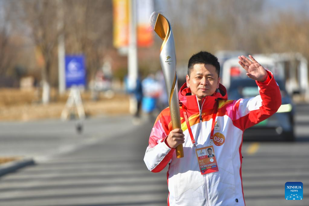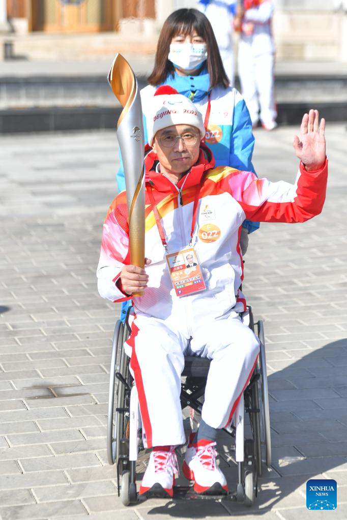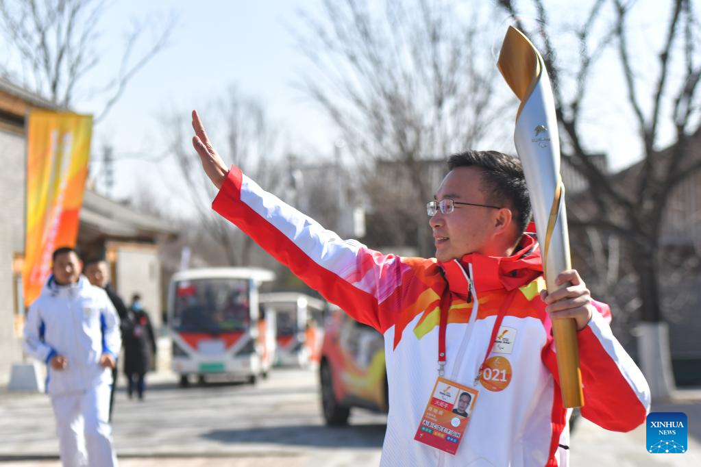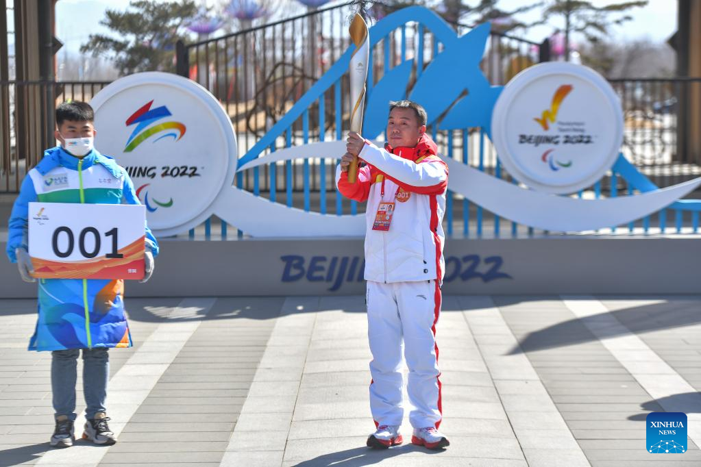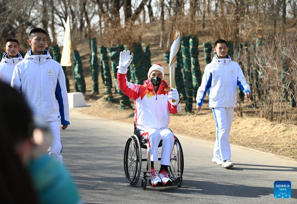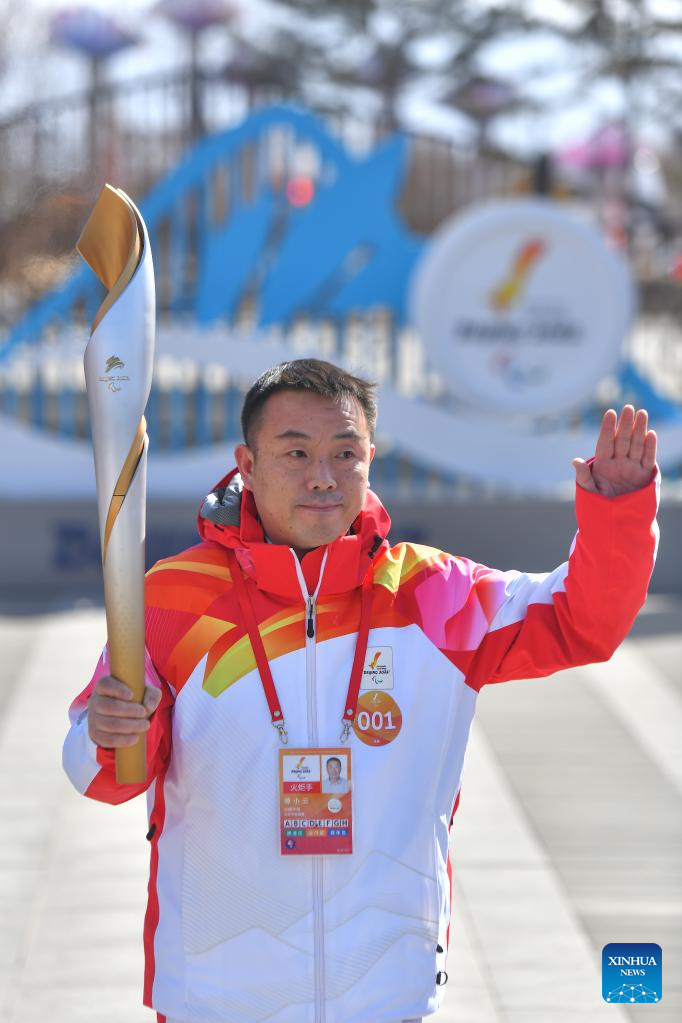 Torchbearer Zhao Xueliang attends the Beijing 2022 Paralymic Torch Relay at Beijing Expo Park in Beijing, capital of China, March 3, 2022. (Xinhua/Sun Ruibo)