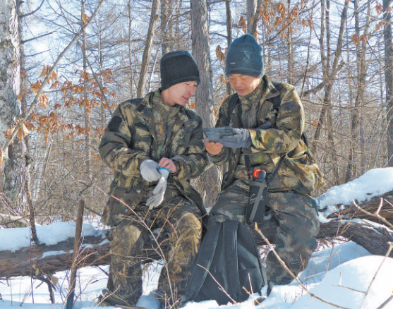 Rangers check an infrared camera. (Photo courtesy of the administration bureau of the Northeast Tiger and Leopard National Park)