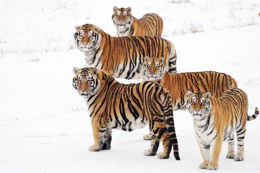 Photo taken on Jan. 15, 2022 shows Siberian tigers at the Siberian Tiger Park in northeast China's Heilongjiang Province. (Xinhua/Wang Jianwei)
