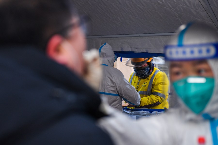 Residents receive nucleic acid tests at a community in Hohhot, north China's Inner Mongolia Autonomous Region, Feb. 24, 2022. (Xinhua/Liu Lei)