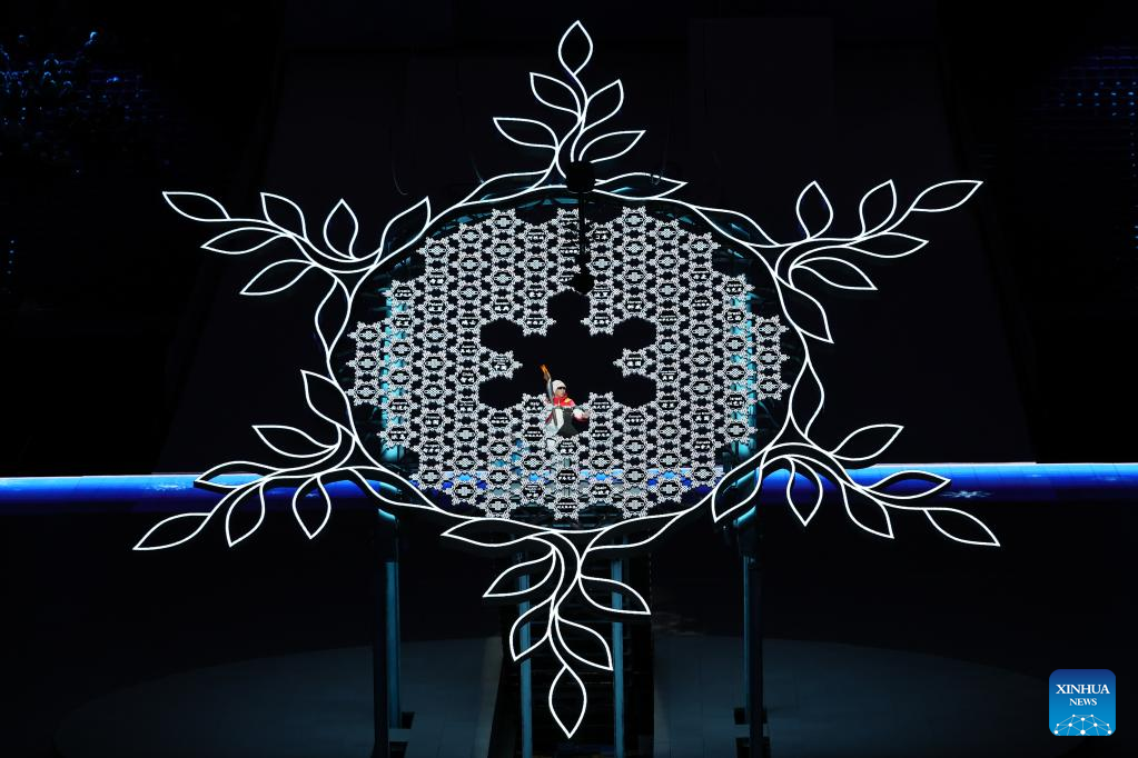 The Paralympic Winter Games Cauldron is lit during the opening ceremony of the Beijing 2022 Paralympic Winter Games at the National Stadium in Beijing, capital of China, March 4, 2022. (Xinhua/Wu Huiwo)
