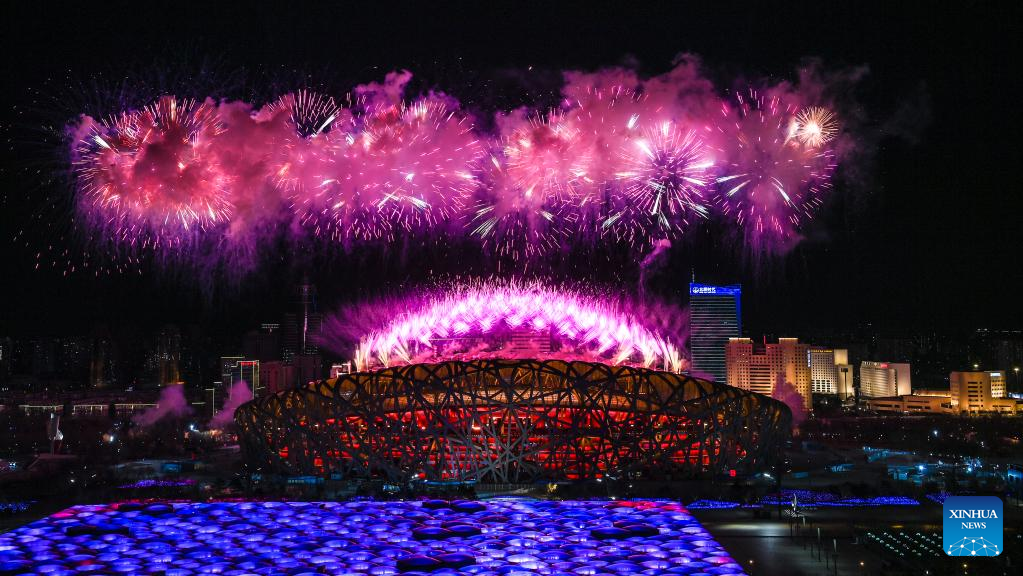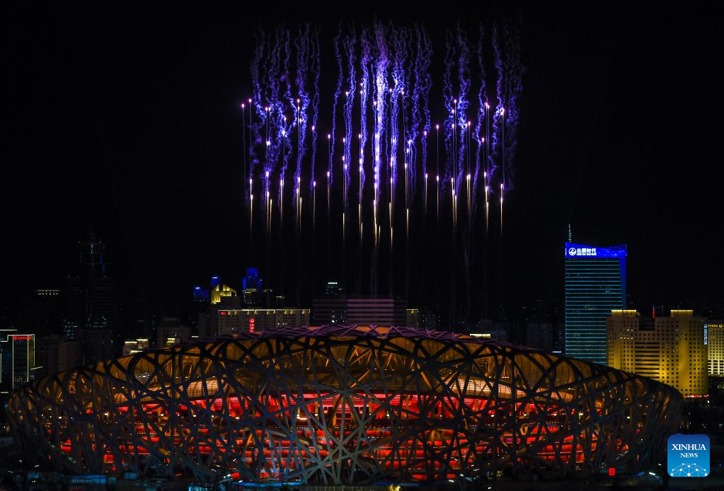 Fireworks illuminate the night sky during the opening ceremony of the Beijing 2022 Paralympic Winter Games at the National Stadium in Beijing, capital of China, March 4, 2022. (Xinhua/Zhang Bowen)