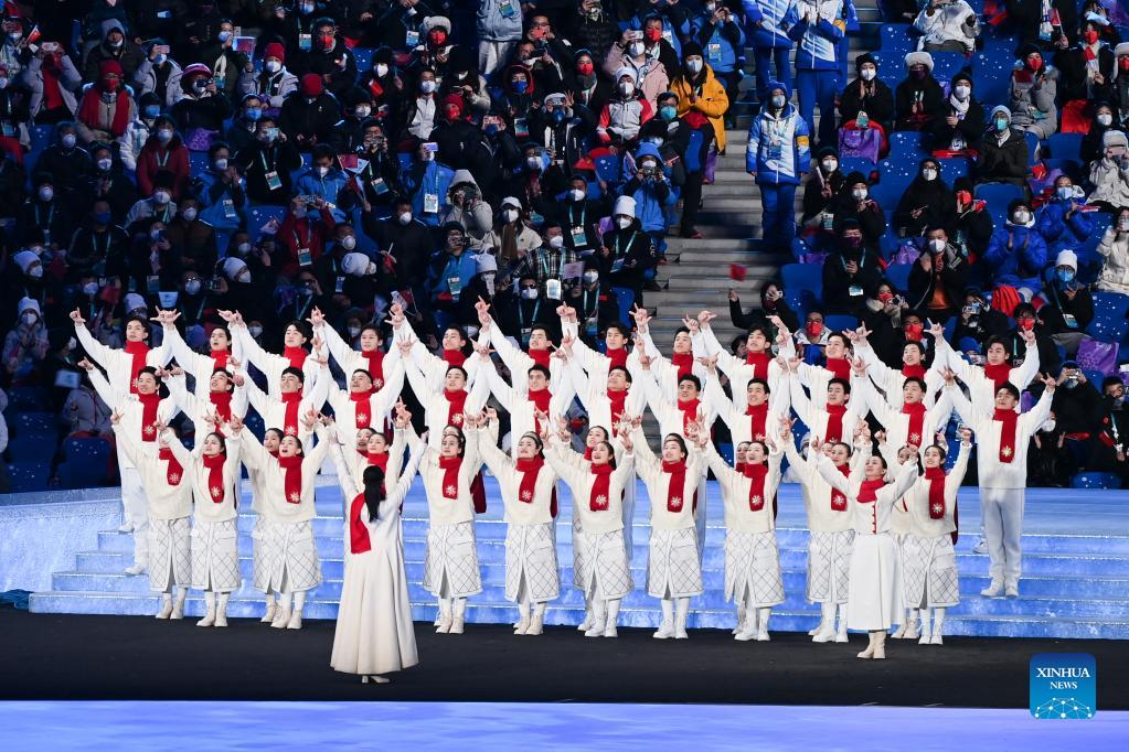 A choir of vision impaired singers sings a cappella during the opening ceremony of the Beijing 2022 Paralympic Winter Games at the National Stadium in Beijing, capital of China, March 4, 2022. (Xinhua/Zhang Bowen)
