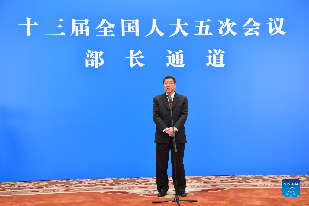 Minister interviewed via video link after opening meeting of 5th session of 13th NPC