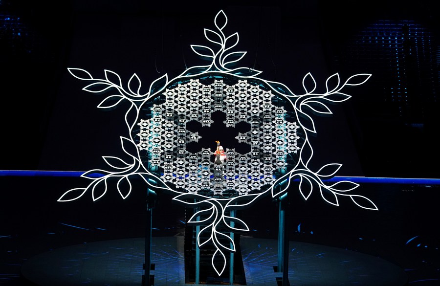 Photo taken on March 4, 2022 shows a scene of performance during the opening ceremony of the Beijing 2022 Paralympic Winter Games at the National Stadium in Beijing, capital of China. (Xinhua/Wu Zhuang)