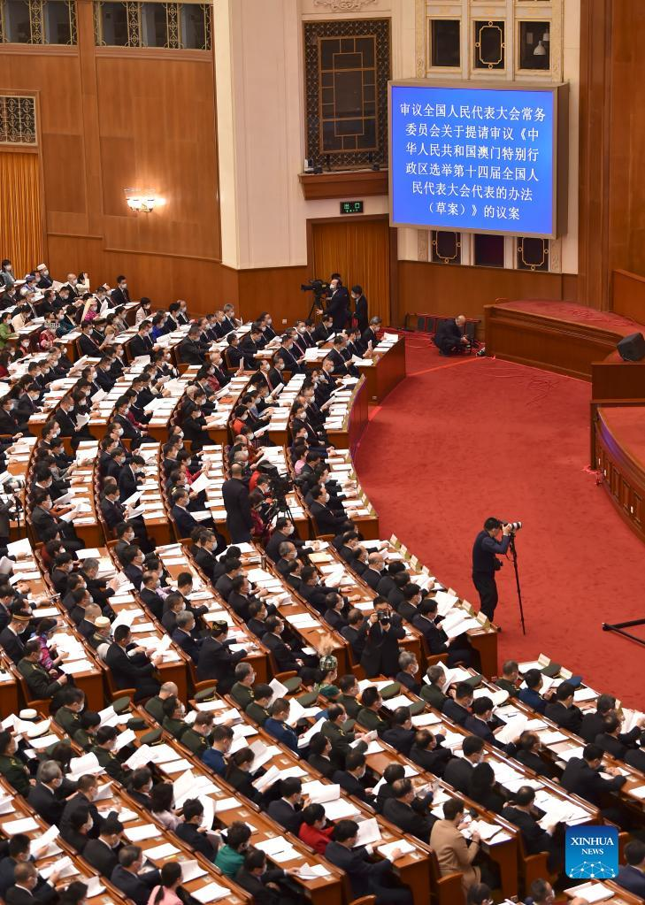 Wang also explained draft methods for the Hong Kong Special Administrative Region (SAR) and the Macao SAR to elect their deputies to the 14th NPC.
