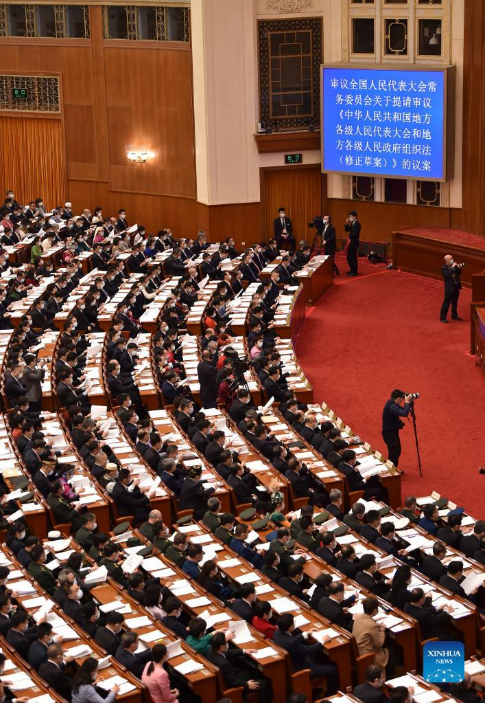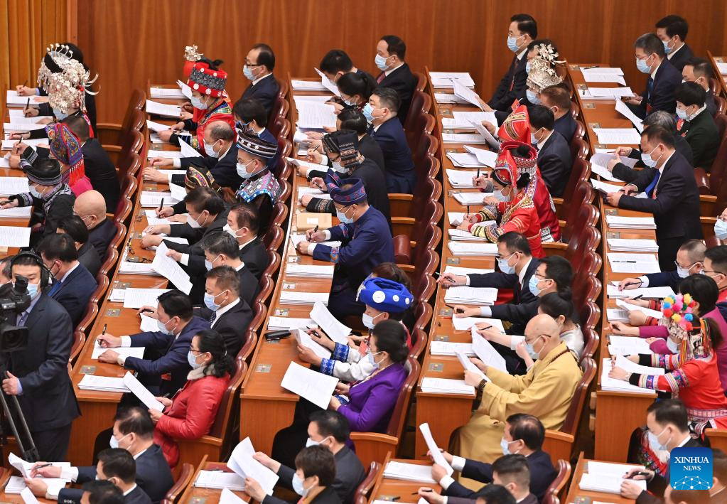 Deputies attend the opening meeting of the fifth session of the 13th National People's Congress (NPC) at the Great Hall of the People in Beijing, capital of China, March 5, 2022. (Xinhua/Xing Guangli)